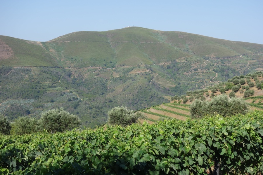 Uma breve passagem na estrada permite-nos debruçar sobre a aldeia de São Cristóvão do Douro, no vale da outra vertente do monte, belamente rodeado de mais socalcos de vinha.