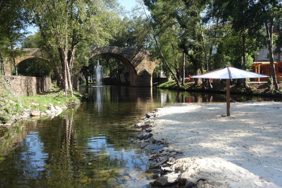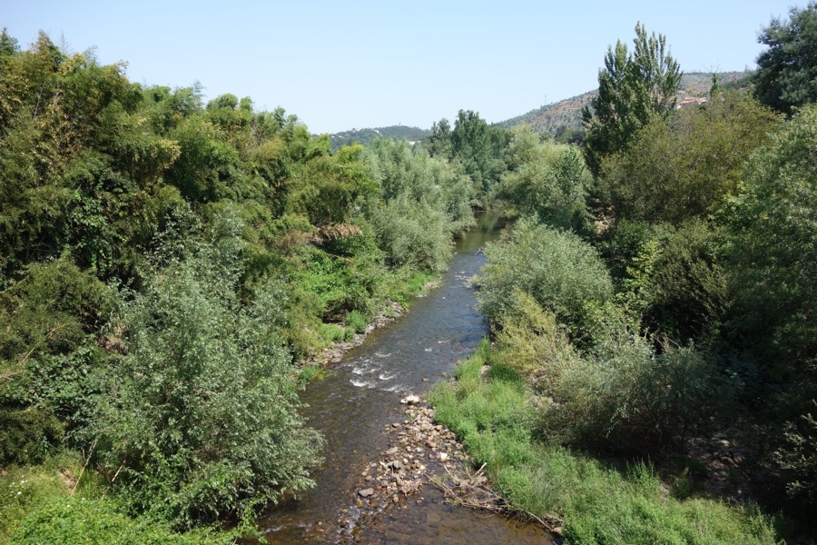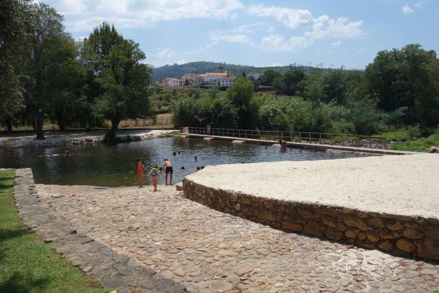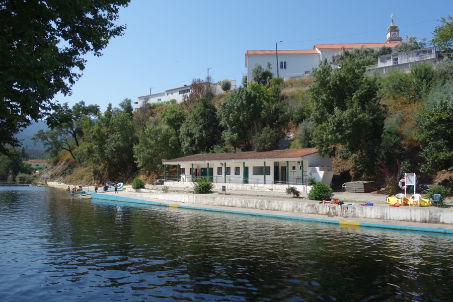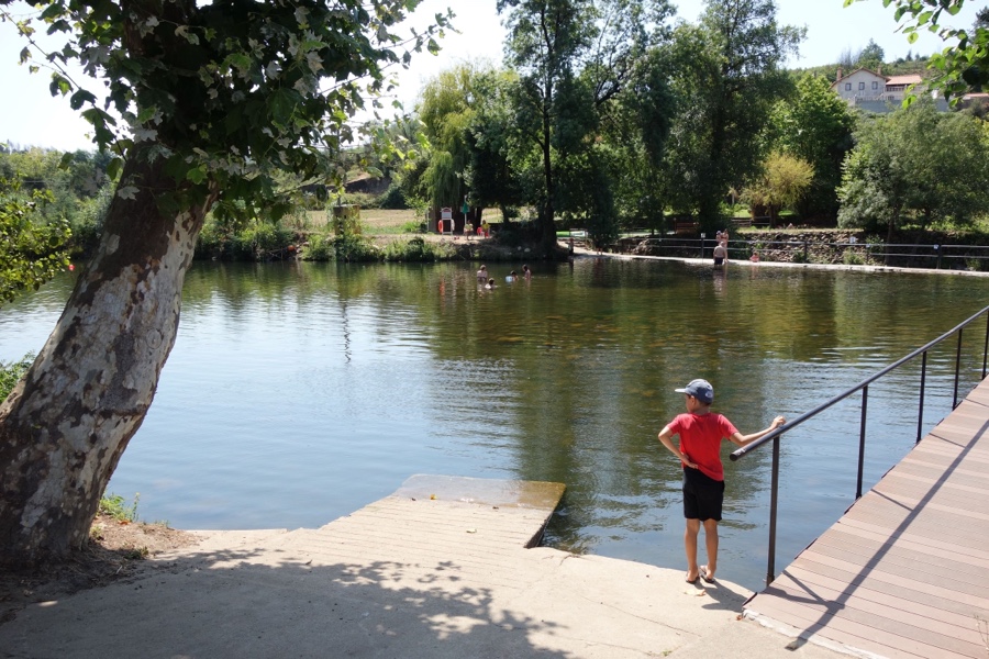 Com pouca demora atravessamos Casal de Ermio – e notamos que na região muitas povoações levam o nome “casal” – e estacionamos na Praia Fluvial da Bogueira. É bem bonita, florida e com todas as comodidades. Com espaço largo para nadar e até uma piscina para os mais pequeninos, possui ainda um bar e parque de merendas. Como se não fosse pouco, podemos ainda caminhar ao longo do rio por entre o sossego da paisagem fluvial feita de salgueiros, amieiros e fetos-reais.