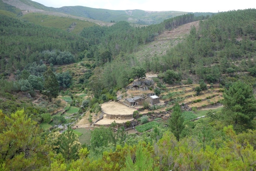 Ainda cá de cima no miradouro, dirigimos por fim o nosso olhar para a direita e damos com uma vista enorme de um vale verdejante, e já não o selvagem conjunto quartzítico das paredes do Ceira.