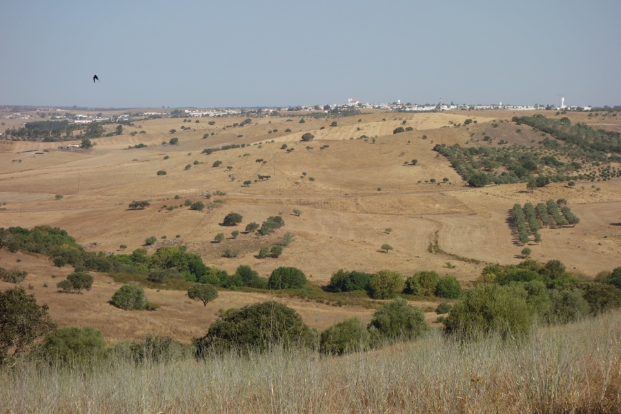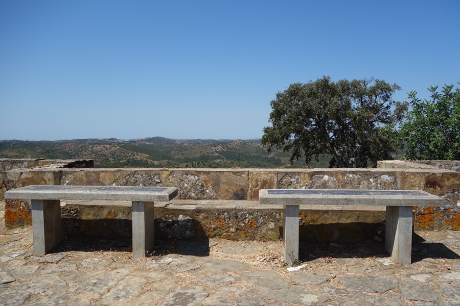 Lá de cima do monte essa realidade é ainda mais presente, uma enorme planície pontuada por uma elevação aqui e ali, como aquela onde Castro Verde está instalada. Diz-se que o Cerro de São Pedro das Cabeças foi o lugar da Batalha de Ourique, mas outros municípios reclamam para si o título. A nós não nos interessa muito essas disputas históricas, o poder real da paisagem chega-nos.