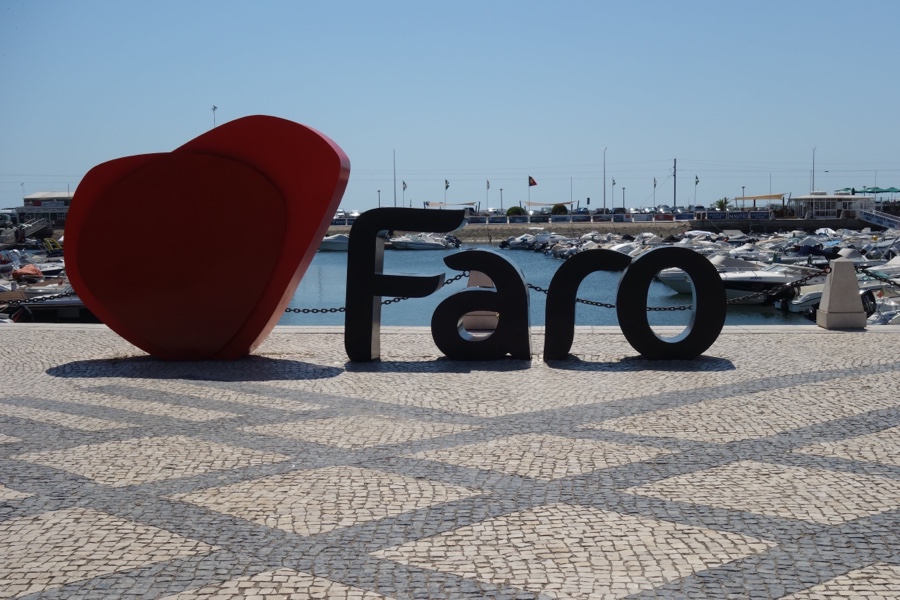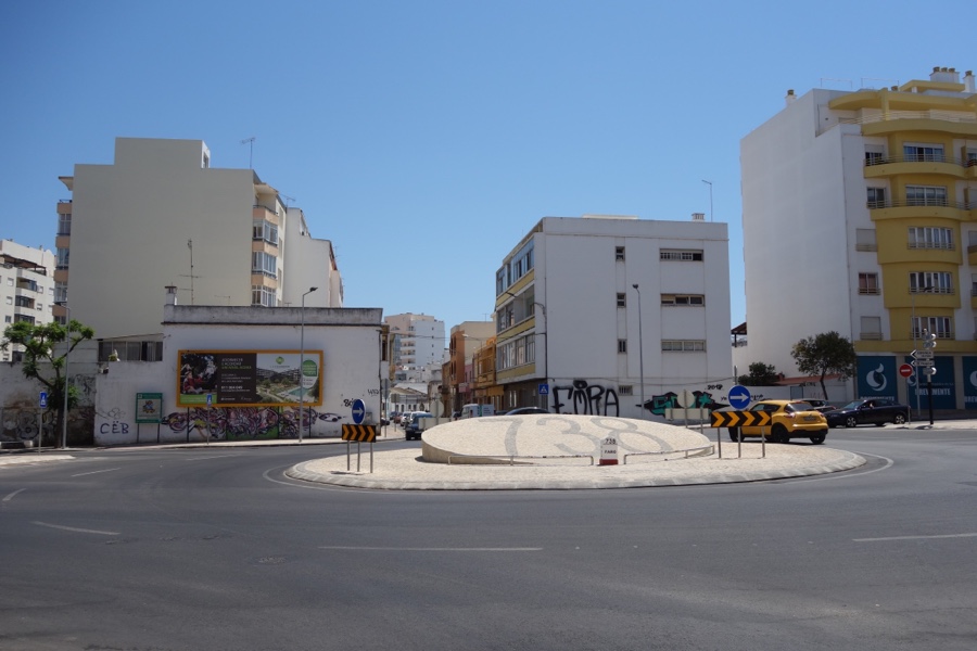 A chegada a Faro faz-se sem graça. Os últimos quilómetros da Estrada são ladeados por edifícios industriais e de lojas típicas dos arredores das grandes cidades. Pior, o marco do quilómetro 738, o derradeiro, está instalado numa rotunda sem graça. Merecíamos uma melhor recepção e uma forma cómoda de alcançar o tabuleiro central da rotunda, para os devidos festejos de final desta longa jornada. Mas não, não deu sequer para chegar junto ao marco e tirar a foto da praxe, tal era o intenso tráfego que não cessava de rodar a rotunda.