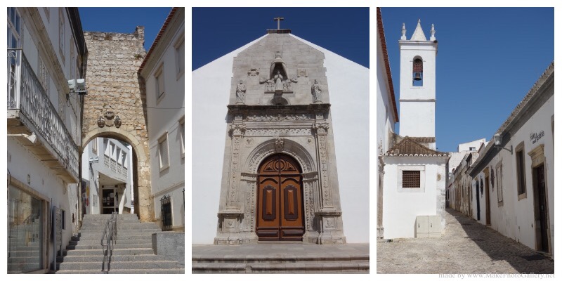 A primeira igreja que visitamos é a Igreja de Santa Maria do Castelo. À sua frente temos a Igreja de Santiago e ao lado o Convento da Graça. Não é à toa que Tavira é conhecida pela “cidade das igrejas”. Diz que são 37 as igrejas e 6 os conventos espalhados pela cidade, pelo que não ficamos muito tempo sem ver uma torre com uma cruz e um sino. A Igreja de Santa Maria do Castelo é a mais típica e reconhecível, com a torre do relógio de um lado e portal gótico do outro.