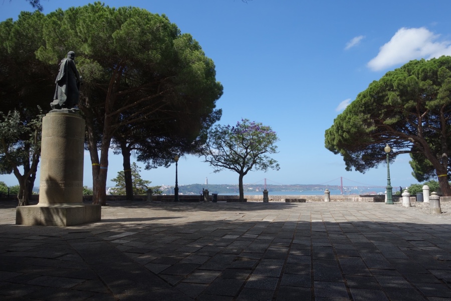 Na primeira praça, a Esplanada, apesar da estátua de D. Afonso Henriques marcar o momento histórico da conquista da cidade, a história é completamente ultrapassada pelo miradouro em que se transforma o Castelo. A paisagem que daqui se avista é épica, tudo se registando aos nossos pés, 360° graus de ícones lisboetas.