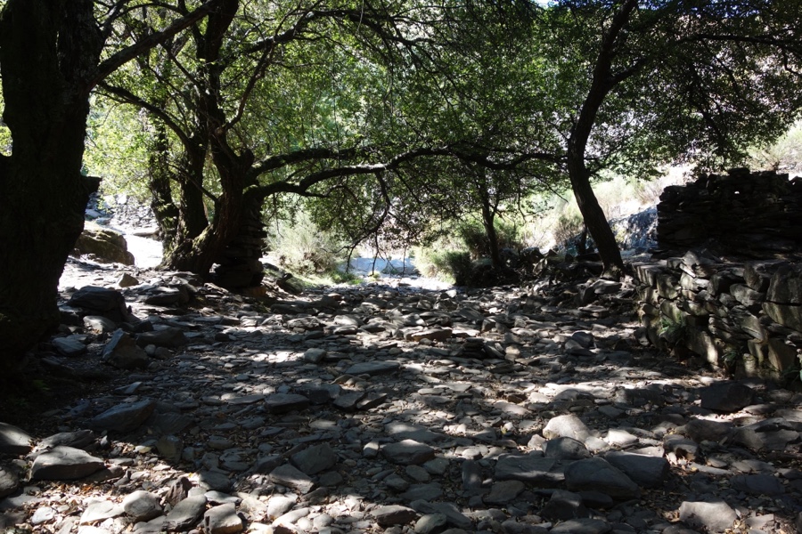 Este é outro dos pontos altos desta caminhada. As inúmeras poças e cascatas que se vão formando ao longo do vale. O Verão não é o melhor momento para as ver na sua máxima ou média força, daí que Maio ou Junho sejam os meses mais aconselhados para quem quer caminhar e mergulhar. Não nos tocou essa pujança ribeirinha, pelo contrário, a ribeira estava bem vazia e até dava para caminhar por ela.