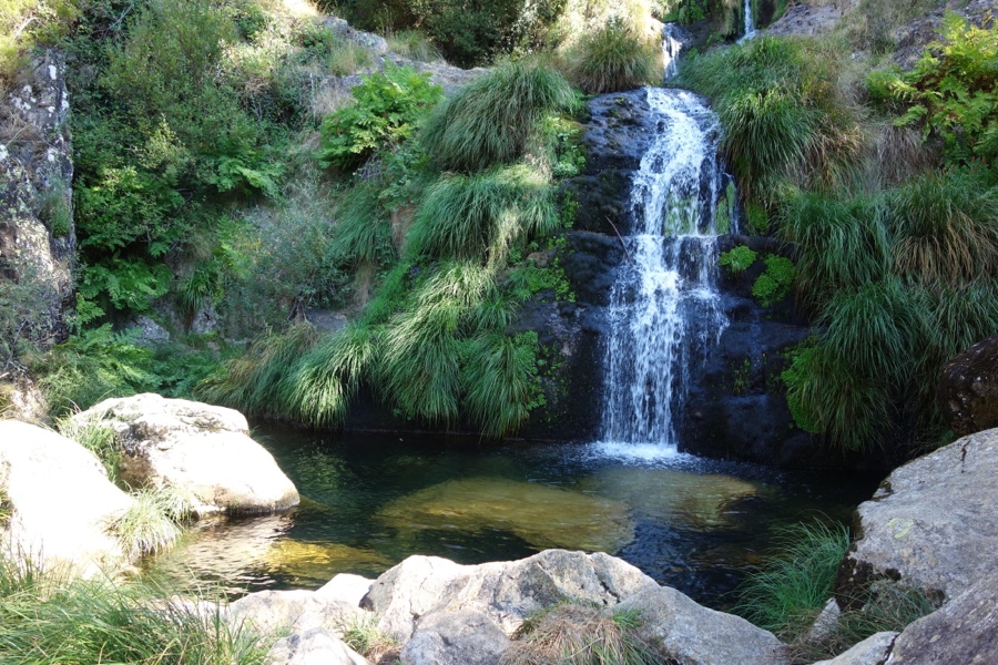 Depois da pausa para refrescar corpo e mente, atravessamos a ponte da Ribeira e já pela outra margem subimos ao longo do Caima. Esta subida não é tecnicamente nem fisicamente dura, apesar de longa. As vistas continuam de alto nível e por este caminho na outra vertente do vale percebemos que as lagoas e cascatas não cessam no que julgávamos ter sido a base da Frecha da Mizarela, antes continuam ao longo do vale que segue até à bela Ribeira.