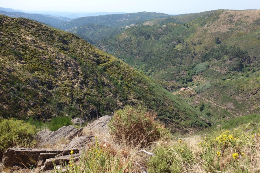 No topo ganhamos uma vista ao longe para as Pedras Parideiras e para a aldeia da Castanheira e, sobretudo, mais ao longe ainda para uma infinidade de horizonte que em dias de visibilidade máxima chega a permitir avistar o Atlântico para lá de Aveiro.