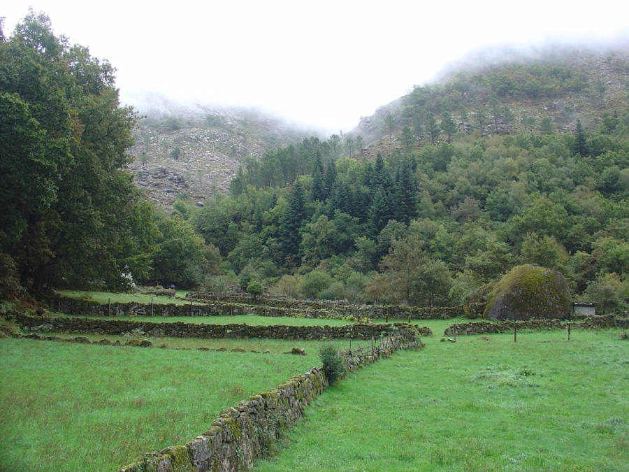 Os últimos 4 quilómetros do trilho são sempre a descer e o último segue pela estrada. À aproximação da aldeia da Peneda vemos uns prados com um tapete de um verde intenso, apenas perturbado pelos muros de granito que dividem as pequenas propriedades.