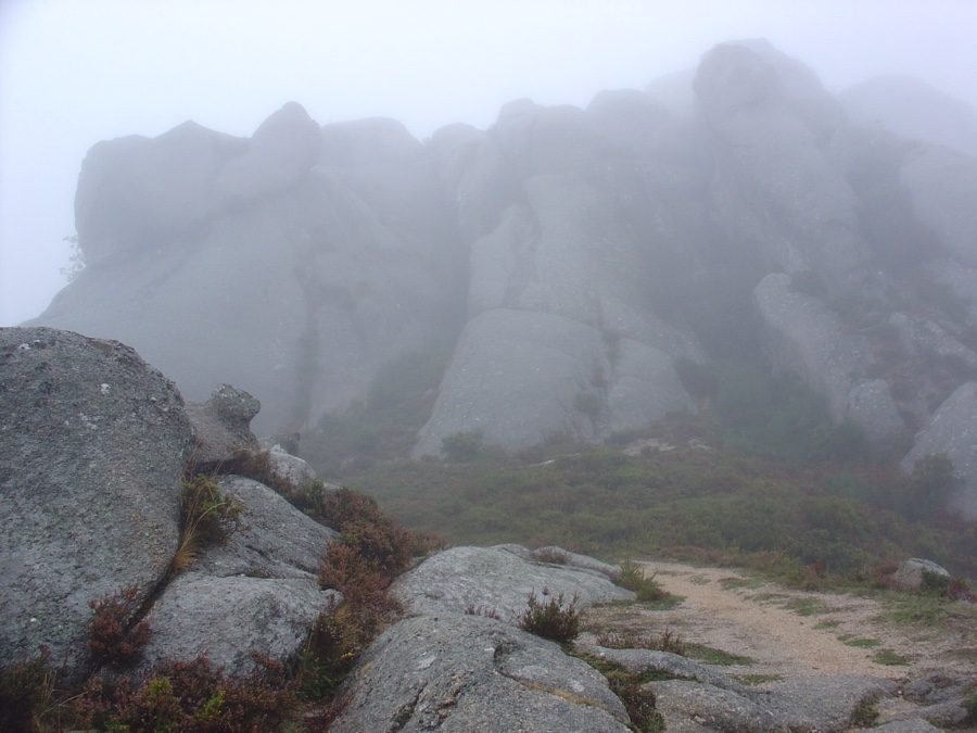 Foi precisamente essa a imagem que nos tocou ver no início desta caminhada de 11 quilómetros designada por Trilho da Peneda, já no concelho de Arcos de Valdevez. O que acontece é que a chuva miudinha não nos largou durante toda a manhã e, pior, a nebulosidade era muita. Mas mesmo com pouca visibilidade seguimos adiante no nosso propósito e subimos os últimos patamares da escadaria do Santuário de Nossa Senhora da Peneda.