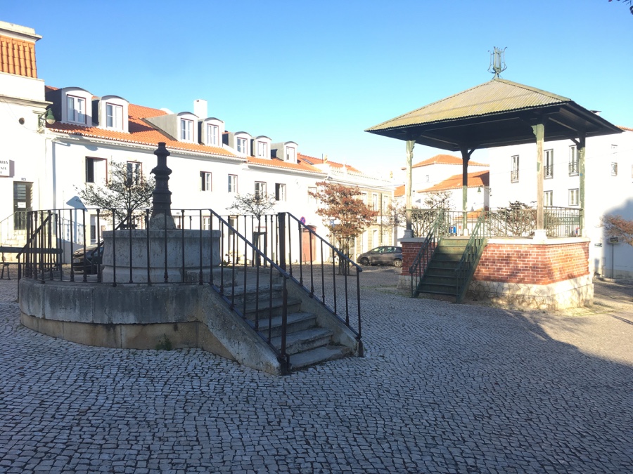Praça da Viscondessa dos Olivais – Nos Olivais Velho, outrora arrabalde de Lisboa onde no século XVII a nobreza da capital começou a construir as suas quintas de recreio, esta praça ainda dá ares de tempos que já lá vão. Tanto, mas tanto, que foi possível ver um senhor sentado num dos bancos da praça com um rechonchudo porco quando lá passei para tirar esta foto. À volta da praça com o seu coreto, cruzeiro e chafariz encontramos diversos edifícios que compunham o conjunto urbano então conhecido como Rossio (e a Igreja Matriz de Santa Maria dos Olivais nas suas traseiras). Um deles é a Casa Viscondessa dos Olivais, mais tarde transformada em asilo para crianças pobres e hoje um jardim de infância.