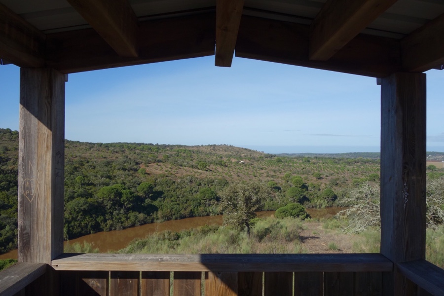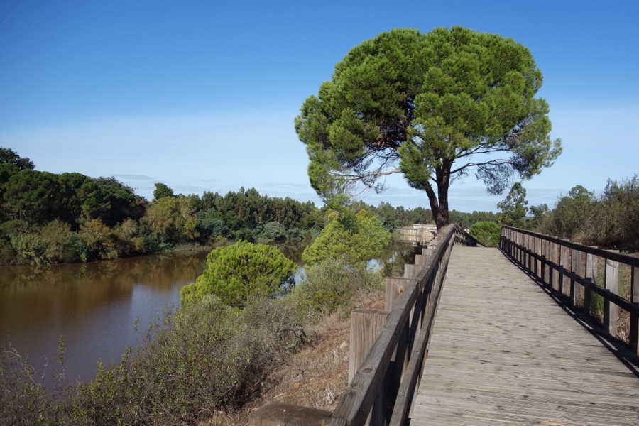 No verão passado experimentámos a relaxante água da ribeira e escondemos-nos do sol debaixo de uma das idílicas sombrinhas mesmo à sua beira. O sol forte do Alentejo não era então propício a esta caminhada de cerca de 5,5 quilómetros (mais 1 quilómetro com desvio até à torre de observação) pela zona ribeirinha e pela zona do montado do Gameiro. Voltámos agora e, mesmo sem novo mergulho, o passeio encheu-nos as medidas.