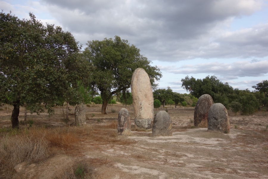 Não visitámos o Museu do Megalitismo, mas a caminho de Pavia, num pequeno desvio na estrada, demos de caras com o Cromeleque do Monte das Fontainhas Velhas. Crê-se que este monumento megalítico, um de muitos da região, tenha sido levantado entre o 4° e o 3º milénio a.C. Dispostos de forma circular, restam 6 monólitos de granito de grão grosseiro e forma almendrada, quase se assemelhando a uns dedos das mãos, seguindo o protótipo do Cromeleque dos Almendres, em Évora.