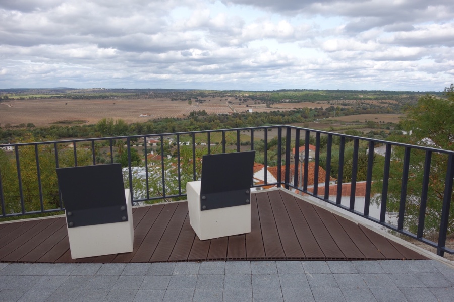 Não deixamos Mora sem apreciar a vista do seu miradouro, junto ao Bairro da Misericórdia. É irrecusável o convite para nos sentarmos numa das suas cadeirinhas com vista privilegiada para a planície que faz ainda parte da bacia hidrográfica do Tejo, sabendo que para ali algures há de estar a nascente do Sorraia.