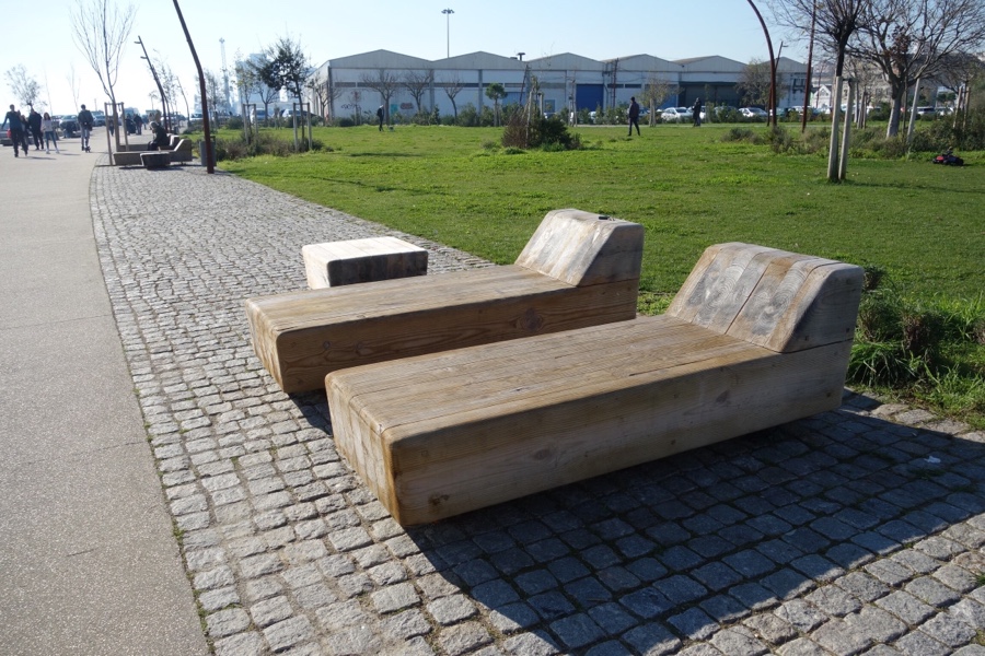 Já os bancos de madeira à beira rio, em especial as espreguiçadeiras, foram desenhados para que pudéssemos ter um momento em que não pensássemos em nada, nem passado, presente ou futuro, só o agora, debaixo do sol com a companhia da brisa do rio.