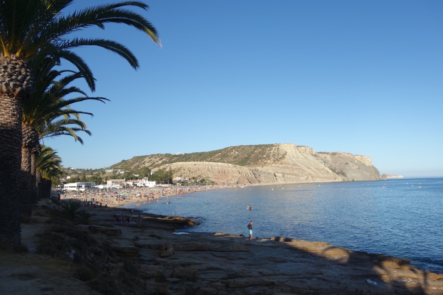 À primeira vista a Praia da Luz pode não ser uma beleza. Mas é, seguramente, uma das mais interessantes do Algarve, até pela estranheza de cenário que aqui encontramos. A falésia é mais escura e bruta, parecendo que pode cair a todo o momento – e pode, há avisos a dar-nos conta da sua instabilidade e do perigo de derrocada. E do outro lado temos o casario totalmente branco todo juntinho. Dá um ar de costa marroquina, a qual, aliás, não anda muito longe daqui.