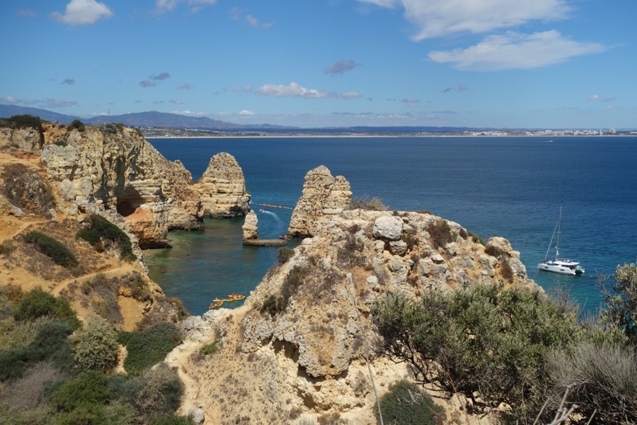 Da Marina de Lagos saem com enorme frequência barcos para um passeio até à Ponta da Piedade (cerca de 15 euros por pessoa por 1 hora). Sem risco de errar, este é um dos pontos mais bonitos da costa portuguesa. As suas falésias douradas têm formas diversas, algumas delas incríveis, permitindo-nos dar largas à imaginação. Será um elefante, um urso, um bolo de noiva? Certo é que os miúdos arranjam maneira de subir a algumas destas falésias para mergulhar nas águas transparentes deste pedaço de Atlântico. Passamos pelo Forte de Lagos, pela Praia do Estudante, pela Praia de Dona Ana e pela Praia do Camilo, das mais fotografadas do Algarve.