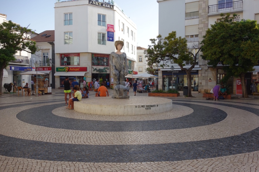 As ruas da Lagos antiga entrecruzam-se e são estreitas, nem sempre planas, com edifícios maioritariamente brancos. Típico da região. Mas o que Lagos têm de diferente é que essas ruas do centro estão cheias de cafés, bares e restaurantes, com esplanadas que se estendem calçada afora. O movimento é intenso. As praças Luís de Camões e Gil Eanes são exemplo do bulício, aqui se juntando as lojas de comércio. Nesta última praça fica a estátua de Dom Sebastião, obra de João Cutileiro que não deixa ninguém indiferente. “O Desejado” foi quem elevou Lagos a cidade e daqui partiu em 1578 para se perder no nevoeiro de Alcácer Quibir e nunca mais voltar.