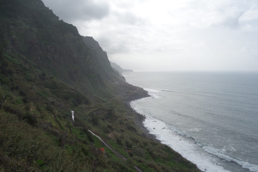 As estradas por onde vamos passando dão-nos paisagens exuberantes, quer no carregado de verde que estão quer no terreno declivoso e paredes rochosas que insistem em vencer. A este ponto já não nos surpreendia mais uma cascata no caminho (mentirinha, estas nunca são em excesso e trazem sempre emoção), a atestar as muitas ribeiras que correm por esta parte da ilha. E é por altura da Boaventura que percebemos a falta que os túneis fazem. A partir da terceira passagem a beleza estrondosa pelo serpenteante vale da Boaventura passa a ser uma demorada viagem e sentimo-nos como locais, perguntando-nos porque é que estas curvas ainda aqui estão e quando chegará o túnel que escavará fundo estes impossíveis penhascos? E, quando ele chegar, havemos de nos arrepender e sentir falta de contornar à exaustão este vale fantástico onde os rochedos passam facilmente dos 700 metros a dois passos do mar.
