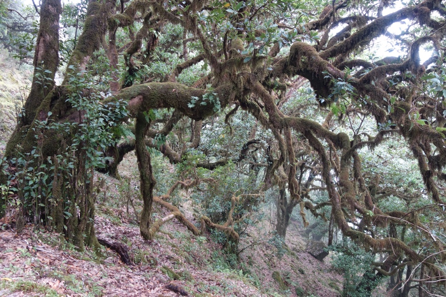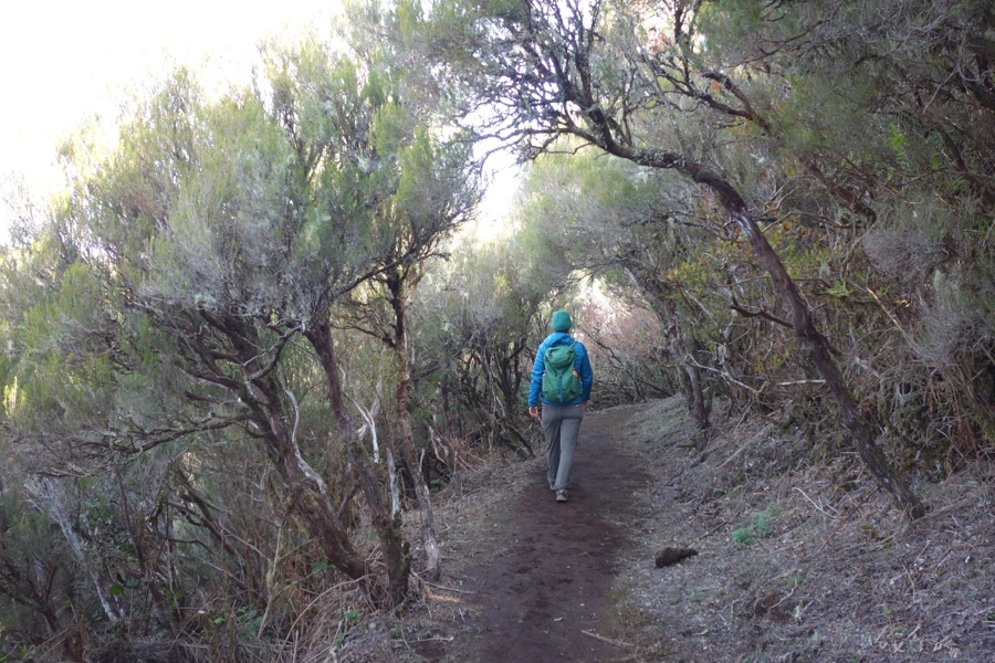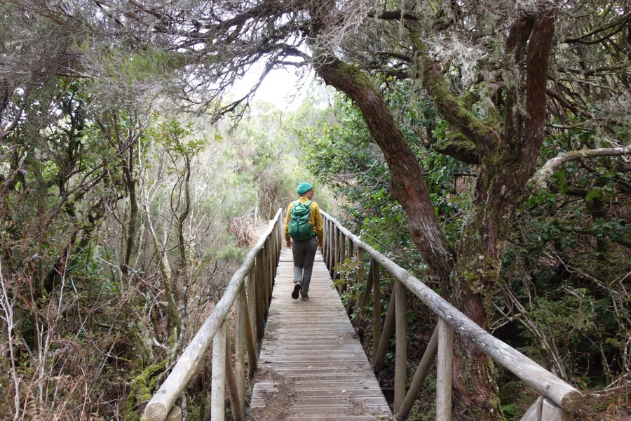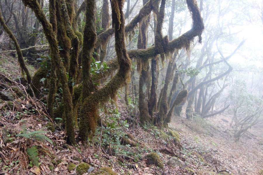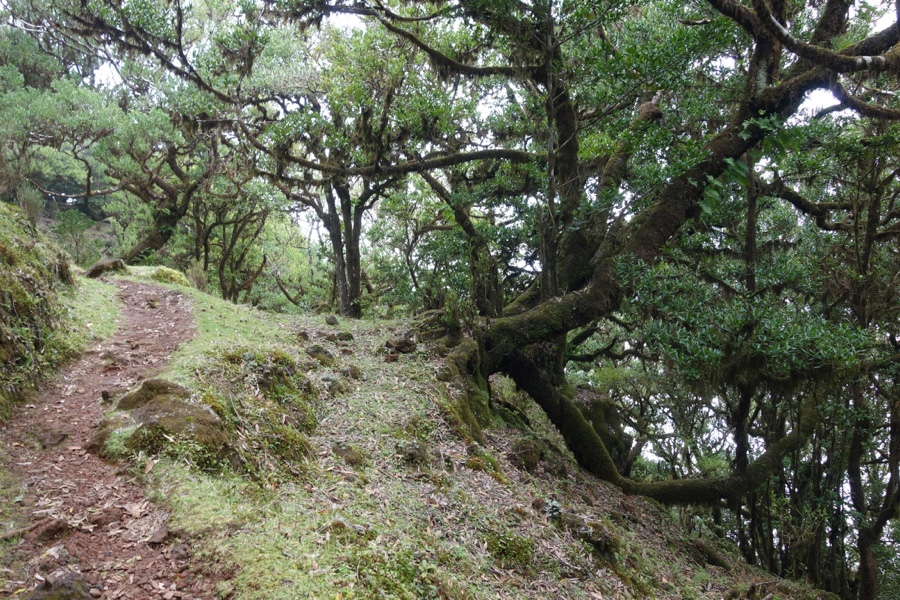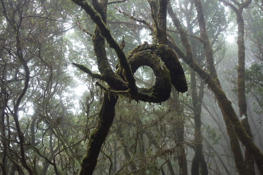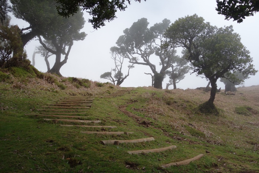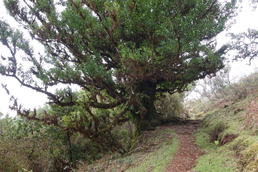 A Laurissilva, já o dissemos, é a floresta indígena da Madeira. Há 15-40 milhões de anos cobria muito do sul da Europa, mas hoje está presente apenas na Madeira, Açores e Canárias. Mas é na Madeira onde ela é mais expressiva e íntegra e por isso está classificada como património da humanidade pela Unesco. Cerca de 20% da ilha está coberta desta floresta e a sua vegetação corresponde maioritariamente à vegetação primitiva. E o mais interessante é constatar a sua versatilidade, uma vez que a Laurissilva do Fanal não tem nada a ver com a Laurissilva do Caldeirão Verde, ambas no norte da ilha. No Fanal as árvores são frondosas mas também formosas, com formas incrivelmente intrincadas. É de uma beleza enternecedora. Maria Lamas falava do “silêncio das árvores quietas” e estas árvores, apesar de parecerem tudo menos quietas, trazem efectivamente um sossego absoluto. Aqui o trilho não é tão óbvio daí que embebidos na floresta nela nos percamos, quer em sentido figurado quer literal. Mas quem se importa de andar por ali às voltas, abraçando os troncos das árvores enquanto os seus ramos estendidos nos afagam?
