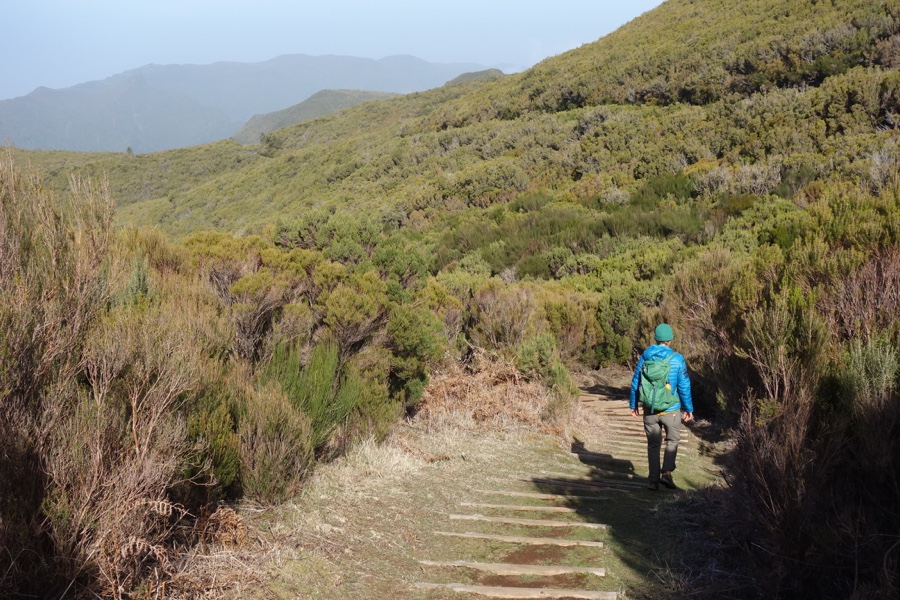 Começamos a 1427 metros de altitude e logo desde o início somos completamente envolvidos pela urze arbustivo, típica da região da Macaronésia. O dia estava soalheiro, ideal para vistas fantásticas sobre o vale do Rabaçal, situado na vertente esquerda do percurso por onde são efectuados os primeiros quilómetros.