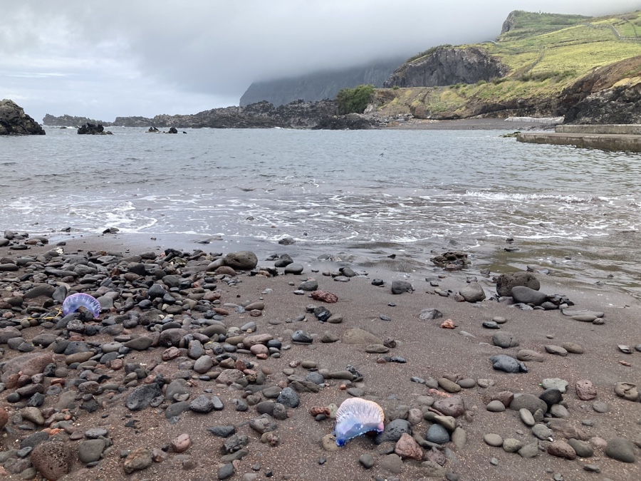 Pouco mais adiante, após um trilho junto ao mar, chegamos à Praia da Areia, de areia escura e boa para um mergulho não fossem as inúmeras caravelas portuguesas que aí reinavam imperiais nesta altura do ano (meados de Junho). E, quase escondida, aparece a Poça da Barroca, certamente o melhor spot para banhos na ilha.