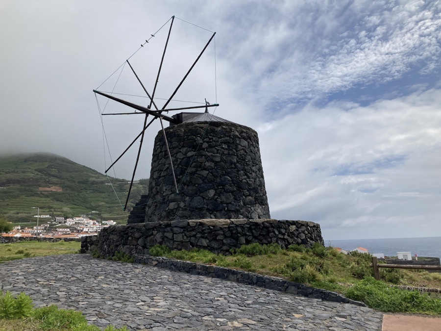 Deitar com a música dos cagarros e acordar com a de outros passarinhos é rotina no Corvo, mesmo em dias nublados. Lá seguimos a caminhar até onde o espesso nevoeiro permitiu. Pouco depois da bomba de gasolina com vista para a imensidão do Atlântico esperam-nos três resistentes moinhos de vento (os outros 3 foram destruídos para a construção da pista do aeroporto, que fica logo ali) instalados acima do Porto do Boqueirão, num miradouro natural para o canal que separa as ilhas do Corvo e das Flores. É por aqui, também, a curta distância de terra, que encontramos o Caneiro dos Meros. A abundância de meros e o facto deste ser um dos melhores lugares para mergulho de todo o arquipélago levaram a que em 1999 pescadores e mergulhadores unissem vontades e esforços e criassem esta que é a única Reserva Voluntária dos Açores (para saber mais é ver este episódio do “Mar”.