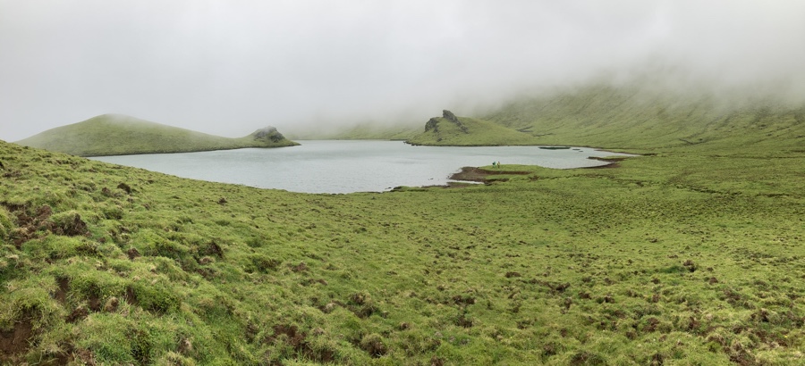 Já estive na ilha do Corvo por duas vezes. Na primeira vi o Caldeirão com algum nevoeiro, mas estava sempre a mudar a paisagem, como um filme que passava no nosso olhar.