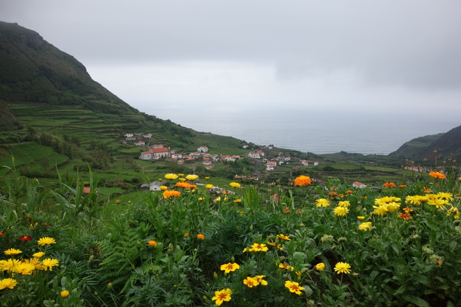 Depois do vale abaixo, agora há que subi-lo, imaginando que já foi famoso pelas laranjas que aqui nasciam e onde, diz-se, chegou a haver 12 quintas. Seguem-se os Cedros, assim nomeados por ter aqui havido muita madeira de cedro. As vistas continuam grandiosas. Infelizmente, e para contrariar ideias feitas de que a ilha das Flores se vê em 20 minutos, não tivemos tempo de desviar para a Ponta Ruiva, o último lugar da ilha a receber luz eléctrica, apenas no princípio dos anos 80.