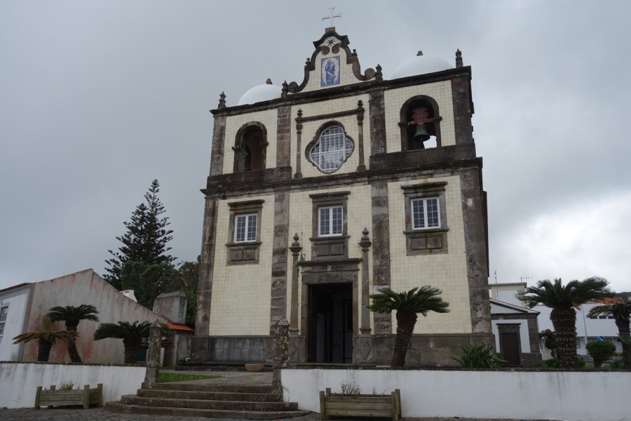 As Lajes das Flores terá sido a primeira vila da ilha e durante muito tempo a mais habitada. Toda a ilha tem perdido população, a atestar que o seu isolamento não se esbateu ainda. Veja-se: no ano de 1900 eram 8127 os habitantes; nos últimos Censos do ano de 2011 eram já apenas 5630 e hoje estima-se que pouco passarão de 4000 habitantes, a sua esmagadora maioria assentes neste pedaço de costa que percorremos agora. Nisto tudo, o concelho das Lajes foi aquele que mais população perdeu em todos os Açores, muito por conta dos terrenos da sua costa ocidental, mas a própria vila das Lajes foi uma das povoações que não só perdeu mais habitantes como viu a sua importância regional diminuir. Nos seus tempos áureos, o seu porto era o mais concorrido, apesar de se manter até hoje em eterna construção, se bem que agora tristemente com motivo, vítima do implacável furacão Lorenzo que por ali passou de forma arrasadora em Outubro de 2019. No entanto, é junto ao Porto que encontramos a sua bonita praia de areia escura onde desagua uma das múltiplas ribeiras da ilha. Por aqui, junto às suas casas com fachadas revestidas tipicamente, olhamos para cima e admiramos ao longe a implantação da Igreja Matriz de Nossa Senhora do Rosário. Já lá em cima, apreciamo-la na sua esplendorosa simplicidade.