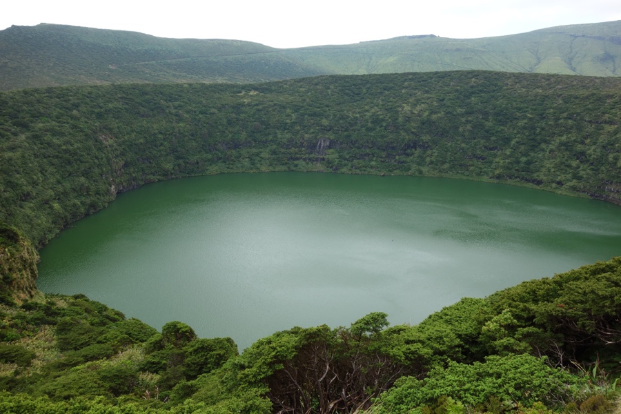 A primeira imagem que nos toca é a das Lagoas Negra e Comprida igualmente lado a lado. Mas não podiam ser mais diferentes uma da outra, quer na forma quer na tonalidade da sua água. A Lagoa Negra é mais oval e a Lagoa Comprida mais alongada. Mas, estranhamente a atentar pelo nome, no dia em que as pudemos apreciar a Negra tinha água mais esverdeada e a Comprida água mais escura. Apesar de não termos mergulhado em nenhuma delas – estão proibidos os banhos em qualquer destas 7 caldeiras – acreditamos que a Lagoa Negra seja a mais profunda de todas, com 130 metros.