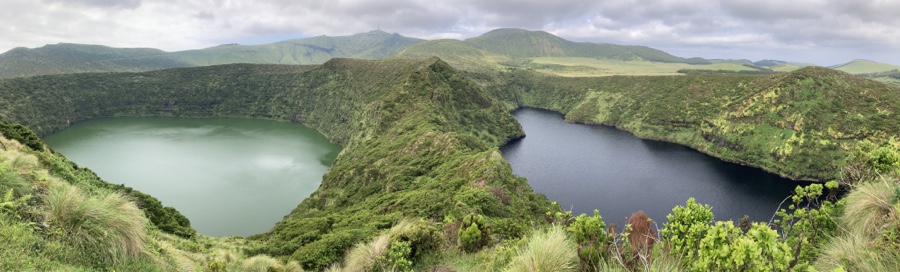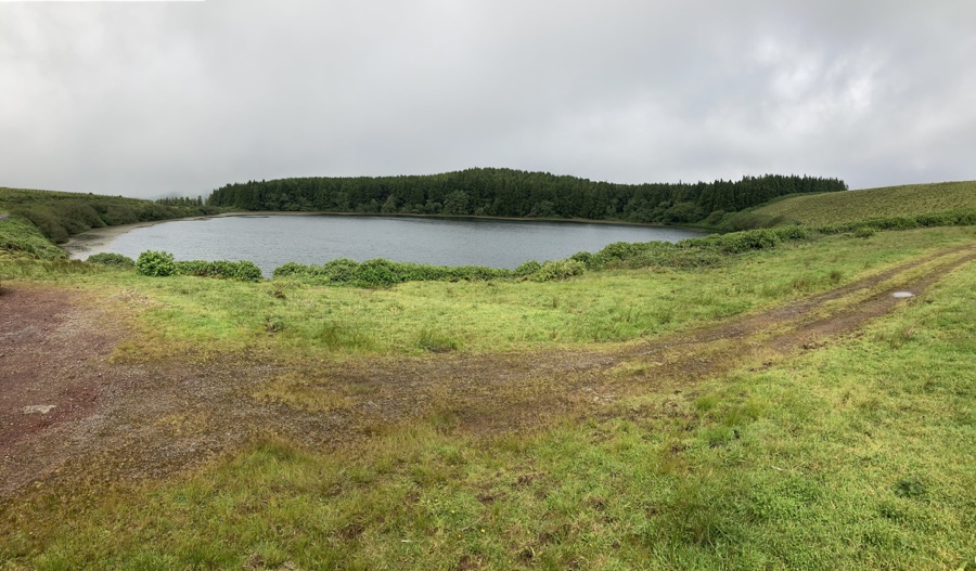 Há um miradouro na estrada que as separa, mas “a” vista é a outra. A Rasa, com uma profundidade de 17,5 metros, está logo ali ao nosso nível, emoldurada por dois montes ondulantes. A Funda, com 26,9 metros de profundidade, fica mais abaixo e está margeada por densa e exuberante vegetação a toda a volta. Apreciada esta maravilha, sigamos, então, até ao Miradouro das Lagoas, lugar de início do nosso percurso pedestre, a 6 kms de distância de carro deste Miradouro das Caldeiras Funda e Rasa.