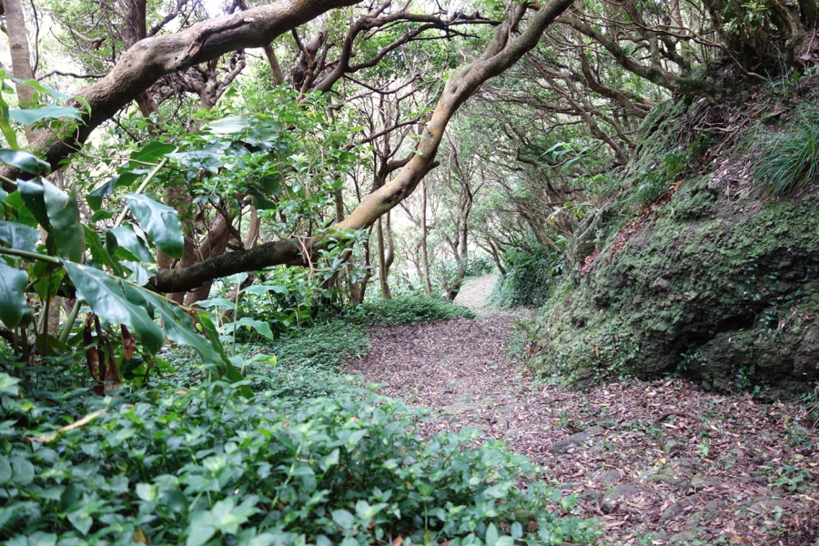 Continuamos a descer pela antiga vereda que durante séculos foi o melhor caminho para a população ir da Fajã Grande a Santa Cruz. A vereda desce por degraus de pedra, bem mantidos mas não isentos de perigo de se escorregar pela costumeira humidade ou vegetação (mas, afinal, esta descida está longe de ser difícil ou perigosa em comparação com a descida para a Fajãzinha do PR2 Lajedo – Fajã Grande).