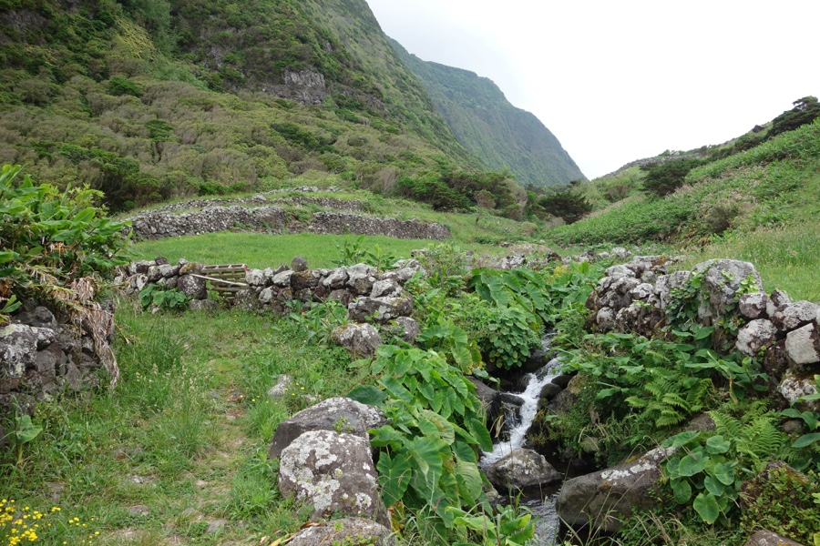 Finalmente cá em baixo, praticamente junto ao mar, é inacreditável olhar para cima, para o topo da falésia, e realizar que descemos aquela parede imensa. A água das ribeiras faz-se sentir e os muros de pedra dividem as pastagens. A igrejinha da povoação da Ponta, pequeno lugar mais afastado da Fajã Grande, embeleza ainda mais a paisagem desta língua de terra aninhada na falésia.