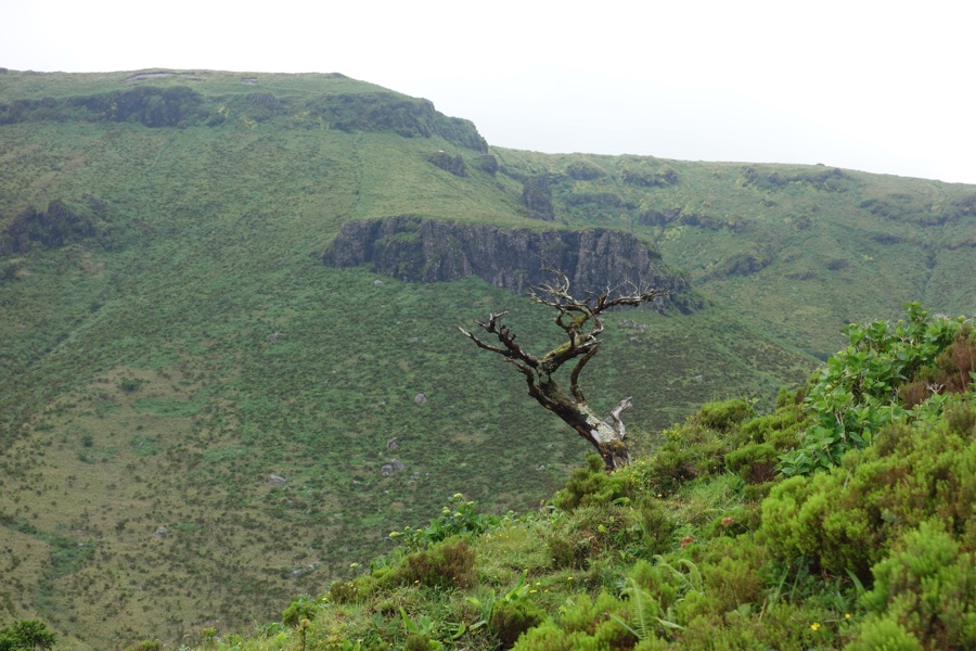 (impõe-se uma nota: o dia da caminhada estava típico das Flores, céu fechado, céu mais ou menos, céu aberto; o dia anterior estava tão terrivelmente nublado que nos forçou a adiar a caminhada; mas o dia seguinte estava quase perfeito, daí que as fotografias aqui publicadas possam não ter sido tiradas todas no mesmo dia)