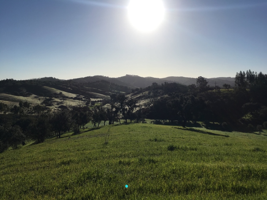 O trilho pedestre “Dunas do Almograve”, com 8,5 kms, permite-nos conjugar a paisagem marítima com a paisagem agrícola ao seguir em parte paralelo ao mar – coincidente com o Trilho dos Pescadores – e em parte interior. Aqui vemos os campos verdes, alguns alagados, com muitas vaquinhas e ovelhinhas por ocupantes.