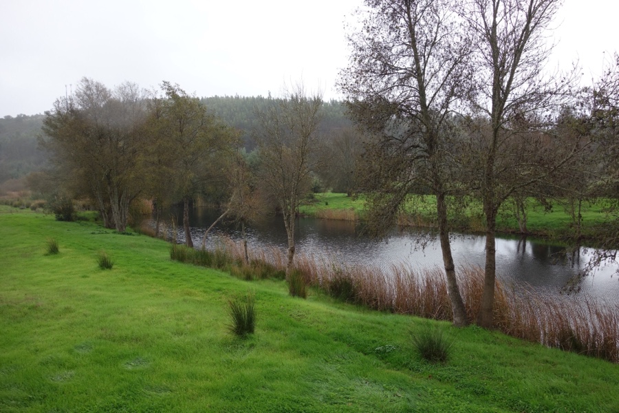 Caminhamos pelas ruinhas, com tempo para abastecer de mel e / ou aguardente de medronho, e logo vamos ter à beira do Mira, aqui conhecido simplesmente por “ribeira”. É Inverno, mas a tranquilidade dada pela água do rio dá vontade de um mergulho, quanto mais não seja para ver o seu reflexo perfeito espalhar-se. Bom, a verdade é que podemos sempre pegar numa pedrinha e tentá-lo, mas deixamos para o Verão a experiência de provarmos a água desta praia fluvial.