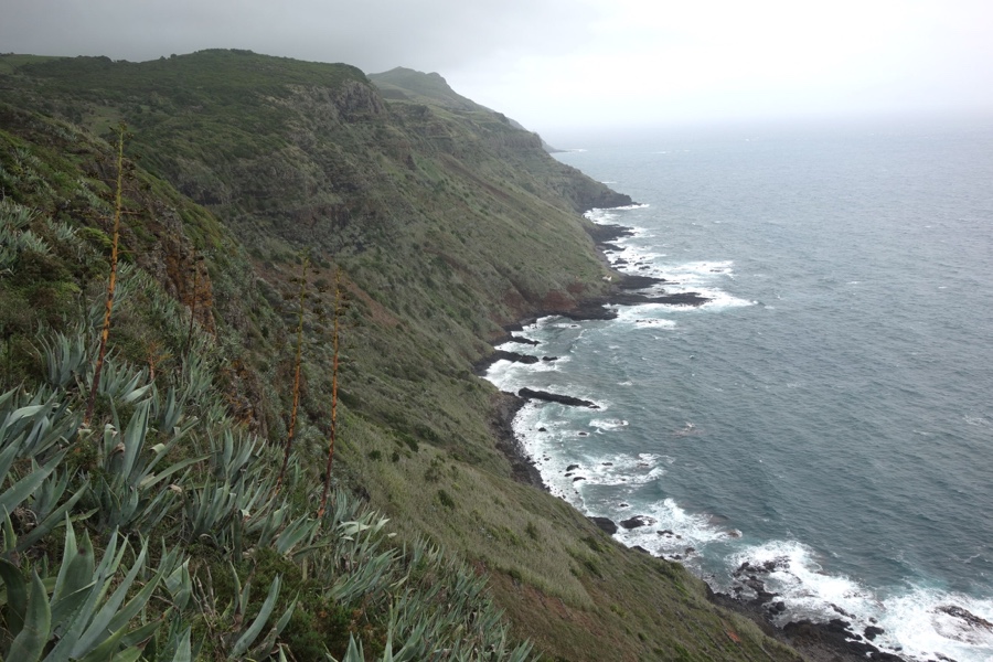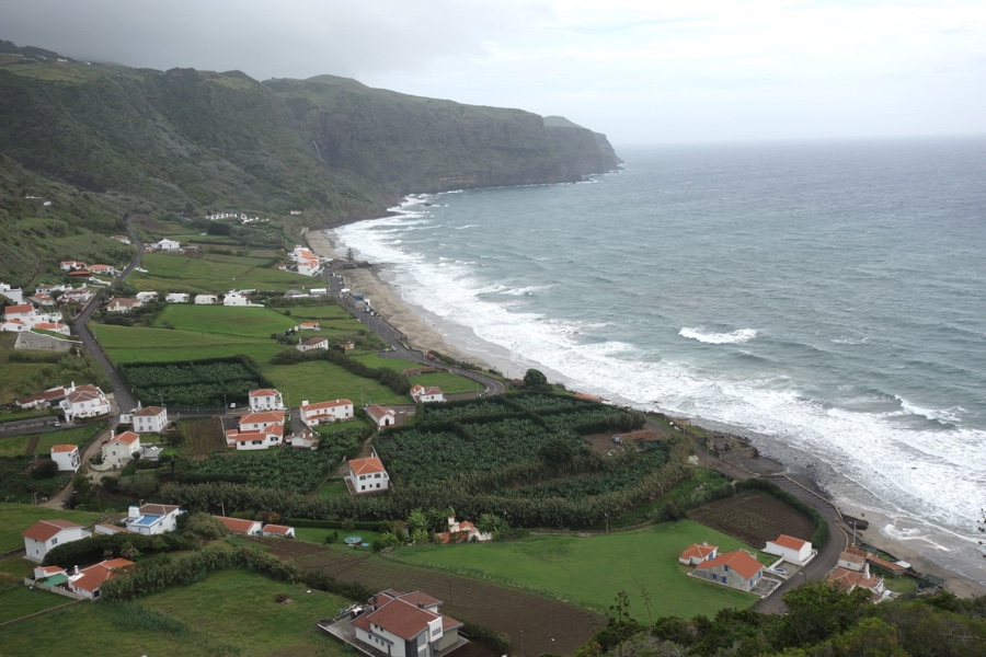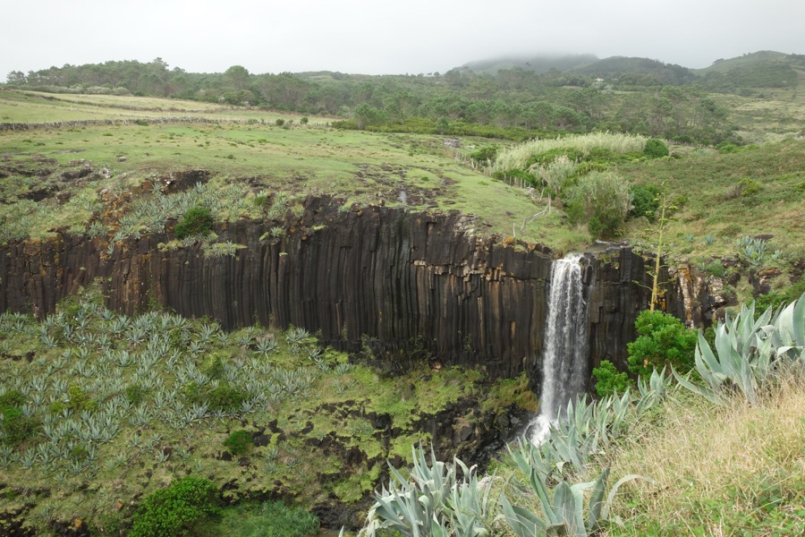 Pouco mais adiante, na Ponta da Malbusca fica mais uma das surpresas da ilha, a Ribeira dos Malóas, também apodada de “Calçada dos Gigantes”, uma alusão a fenómeno semelhante da Irlanda do Norte. É um vale fluvial que dá para o mar e abriga uma queda de água com cerca de 15 a 20 metros de altura e caracteristicamente formada por colunas verticais que são o resultado de uma escoada lávica basáltica. Um cenário único que serviu para abrir o apetite para outras belezas que admiraríamos nos próximos dias.