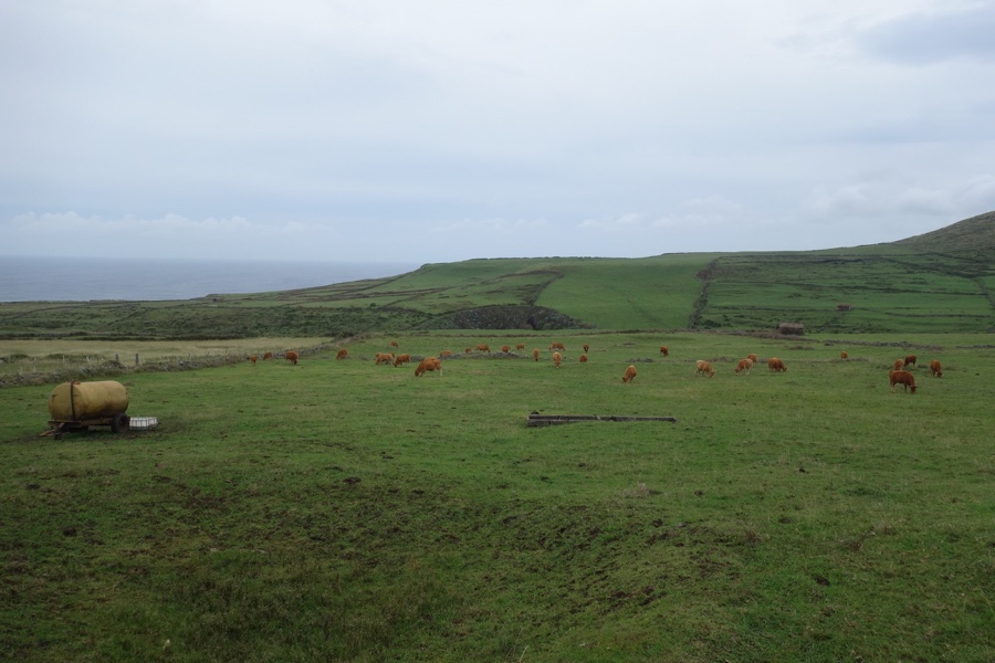 Perplexidade pela negritude e aridez da ilha de Santa Maria é o que experimentámos também à chegada. Não houve aproximação pelo mar, antes pelo ar, mas o final do dia com tempo nublado e chuvoso não deixou perceber os seus contornos. Só no dia seguinte partimos da Vila do Porto a passear pela parte mais ocidental da ilha, ainda com tempo feio. O verde e uma ligeira ondulação de um ou outro monte estavam lá, mas foi a planura e o negro e ocre que mais se fizeram sentir. Pensámos: estes Açores mais próximos do continente são diferentes.
