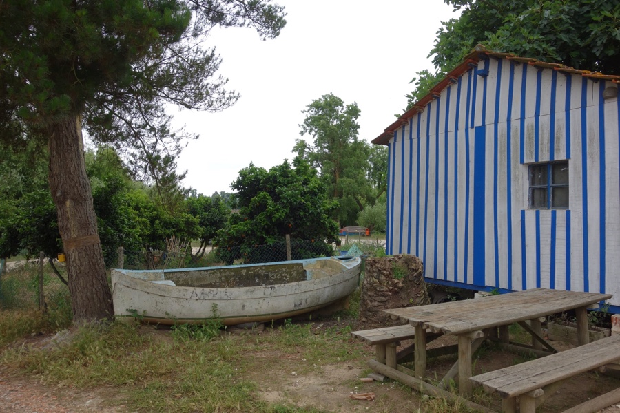 A sua história é muito curiosa e em tempos já havíamos falado dela aqui no blog a propósito de uma aldeia avieira na Póvoa de Santa Iria e de Escaroupim, esta última praticamente à frente de Palhota, na margem contrária do Tejo. Foi no início do século XX que pescadores oriundos de Vieira de Leiria e sua família começaram a instalar-se nas margens do Tejo para aqui pescar no Inverno, voltando no Verão para a sua terra natal. A ideia era a de buscar águas mais tranquilas no Inverno, evitando assim que fossem obrigados a estar parados por falta de condições de pesca nessa estação, regressando depois à pesca no mar. Construíram as suas habitações precárias junto ao rio, mas ao longo das décadas esta comunidade sazonal foi permanecendo mais tempo durante o ano até se fixar de forma definitiva à beira Tejo. Estes migrantes que demandavam o Ribatejo trouxeram consigo novos costumes e uma cultura e tradições diferentes. A arquitectura das suas casas é uma delas, como vimos, mas também os barcos – bateira – eram característicos e o facto de tanto o homem como mulher irem à pesca, manobrando ela o barco a remos e lançando ele as redes. Diz-se que Alves Redol terá por aqui morado durante uns tempos e Palhota servido de inspiração para a sua obra maior, “Avieiros”, cunhando de forma definitiva e intemporal o termo “vagabundos do Tejo” para caracterizar esta gente tão típica.