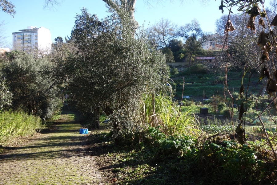 As possibilidade de caminhos continuam, deixando-nos quase sempre imersos nessa vegetação. Dá a sensação de que poderíamos aqui ficar um dia inteiro sem pisar os mesmos trilhos, tão grande é este Parque Botânico. Sorte de quem aqui conseguiu um talhão na horta comunitária, desculpa perfeita para voltar repetidas vezes.
