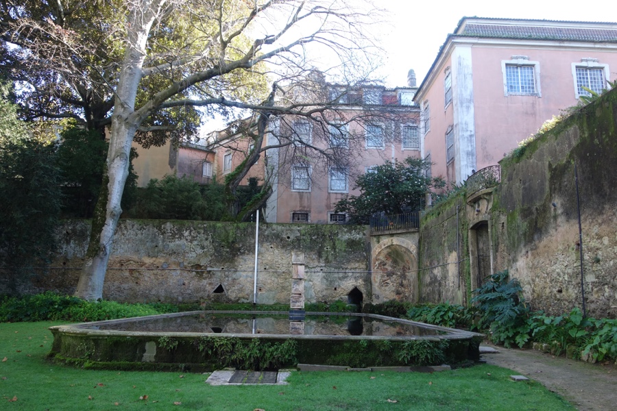 Comecemos pelo princípio. A entrada pelo Largo Júlio Castilho, junto à Calçada de Carriche, deixa-nos no terreiro do Palácio Angeja. Construído no século XVIII pelo 3° Marquês de Angeja, aproveitando as estruturas onde haviam habitado anteriormente os freires de Avis, é um edifício de dois pisos de fachada pombalina com um interior que preserva apontamentos decorativos que gostamos de admirar em palácios: tectos, azulejos, pinturas. A intenção dos seus primeiros proprietários era a de instalar um Museu de História Natural anexo ao palácio. Esse projecto não foi adiante, mas o da plantação do parque botânico sim. Foi logo por volta de 1750 que diversas espécies tropicais e aves exóticas foram aqui desenvolvidas, num projecto atribuído ao botânico italiano Domenico Vandelli, tendo-se-lhe seguido a instalação de chafarizes e estatuária. Resultado? Em 1793 este parque botânico era já considerado como um dos três mais bonitos jardins de Lisboa.
