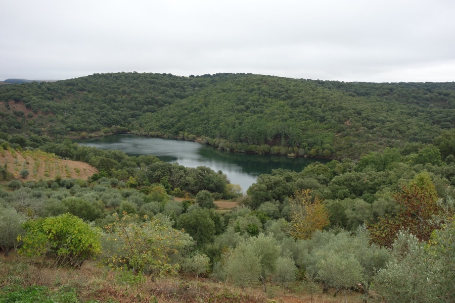 A saída de Alfândega da Fé, novamente em direcção ao Sabor, deixa-nos com uma bela despedida da vila enquadrada pela pequena barragem da Ribeira do Malimão, mais uma a servir de prova de que nunca estaremos muito longe do elemento água.