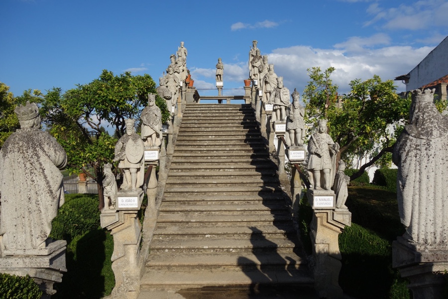 É precisamente pelo Jardim do Paço Episcopal que iniciaremos este passeio por Castelo Branco, momento enorme e inesquecível no nosso país. O Paço Episcopal já existia desde o século XVI e incluía uma zona de olival, vinhas, hortas e bosque, mas foi sob a orientação de D. João de Mendonça, então bispo da Guarda, que a partir do primeiro quartel do século XVIII o seu jardim ganhou a forma que ainda hoje mantém. Em estilo barroco, este espaço verde de recreio tem jardins de buxo, canteiros, espelhos de água, vários terraços e uma série de estátuas, como na Escadaria dos Apóstolos e na Escadaria dos Reis, esta com indicação do nome e cognome de cada um deles, incluindo o do Conde D. Henrique, pai do primeiro rei português.
