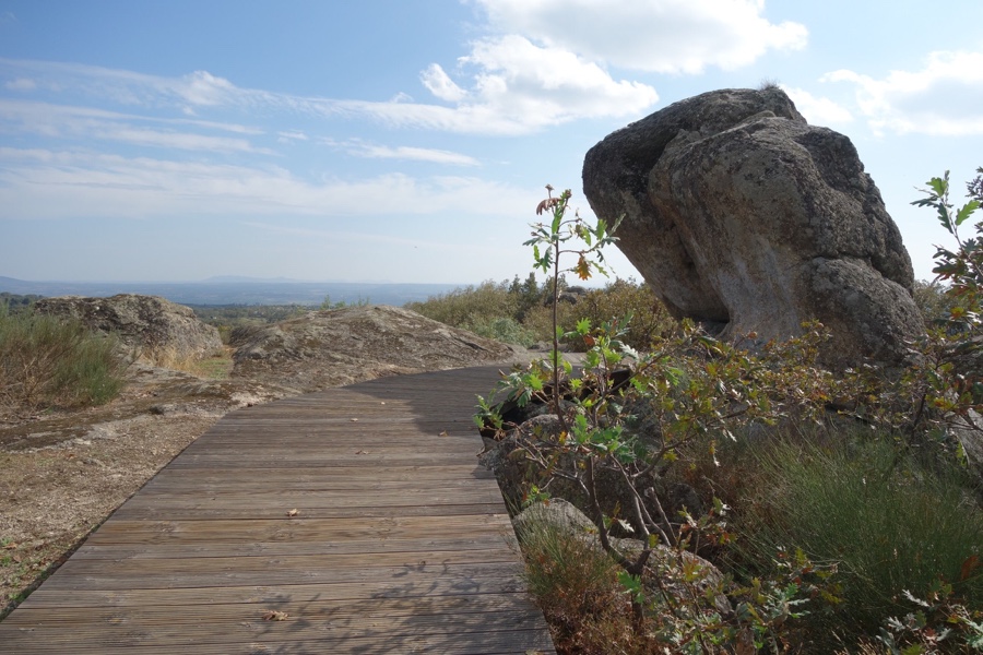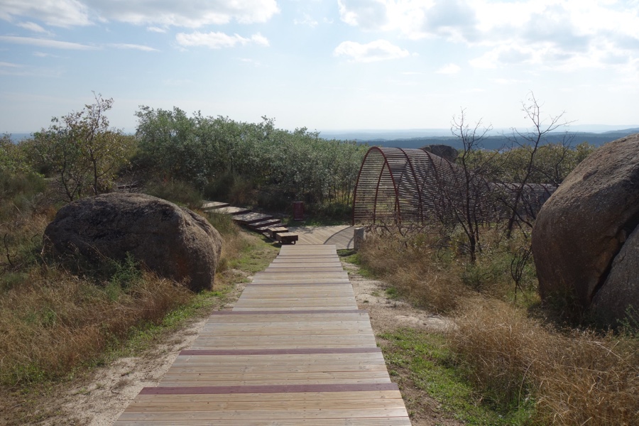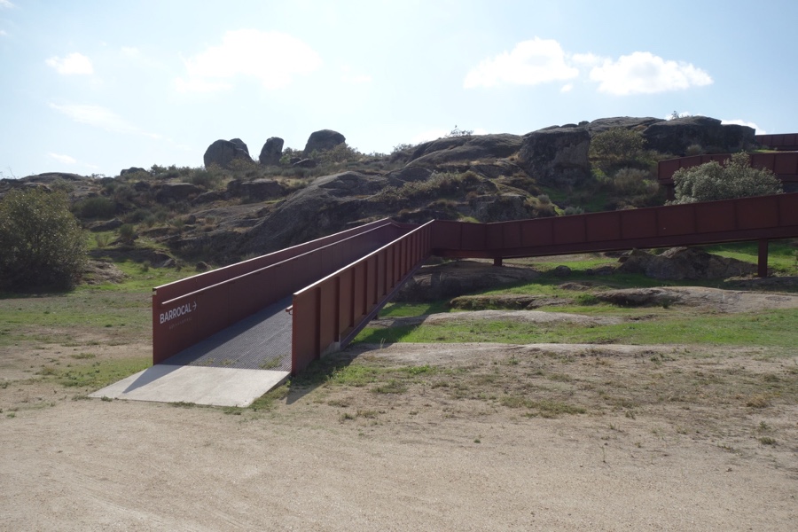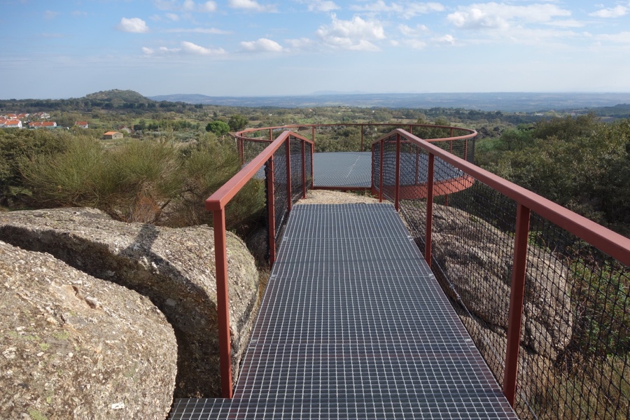 Uma série de caminhos e passadiços foram desenhados, adaptando-se às especificidades topográficas e geológicas do sítio, composto por blocos graníticos de formas diversas e singulares e por mirantes e plataformas de observação de traço marcante.