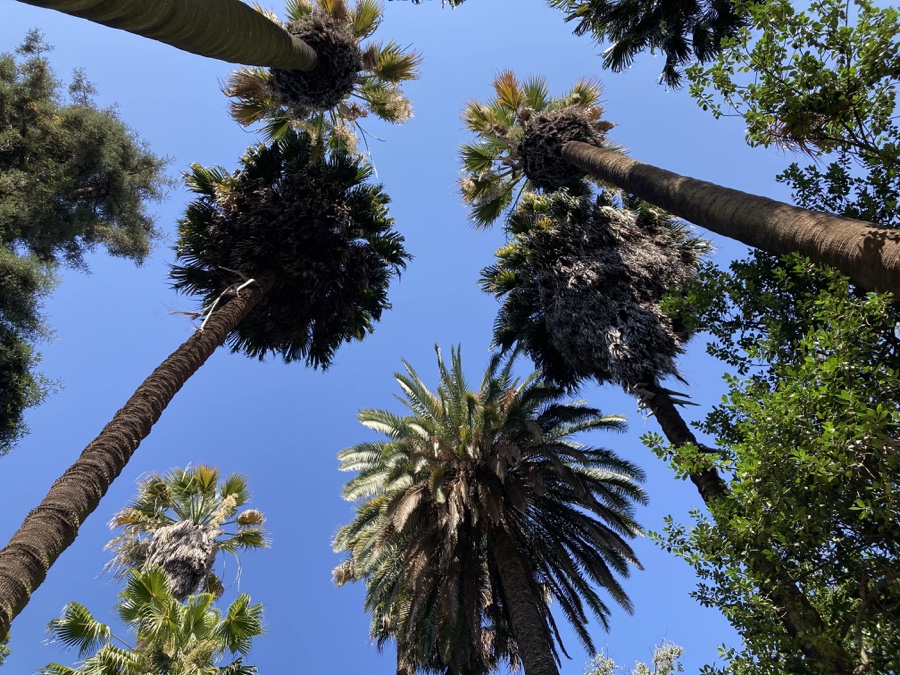 Continuando o passeio, temos já a certeza de termos sido transportados para um mundo tropical. Ainda não chegámos à Rua das Palmeiras e já elas andam por qualquer canto do Jardim, sempre formosas e altaneiras. A colecção de palmeiras do Jardim Botânico acolhe mais de 30 espécies diferentes, algumas delas com dezenas de metros de altura, e é considerada uma das maiores colecções de palmeiras ao ar livre da Europa.