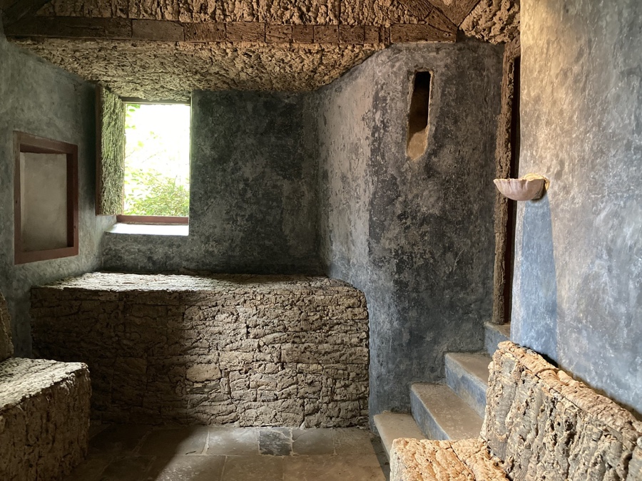 Passamos ainda pela Casa das Águas, lugar das instalações sanitárias com cisterna e latrinas e, já no piso superior, pela biblioteca, pelo alojamento para os religiosos em visita, pela enfermaria e pela cela da penitência.