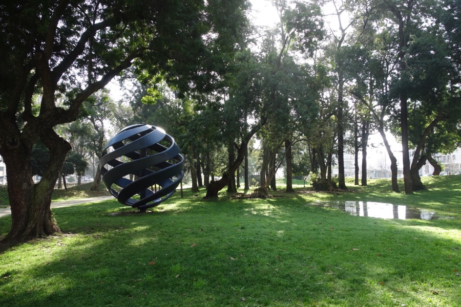 Atravessada a Avenida do Brasil, na parte Sul do Jardim aguardam-nos mais caminhos arborizados. E outro lago com linhas sinuosas como alguns dos caminhos do jardim e arredondadas como as formas da escultura que descansa a sua beira (“Infância”, de Sam).