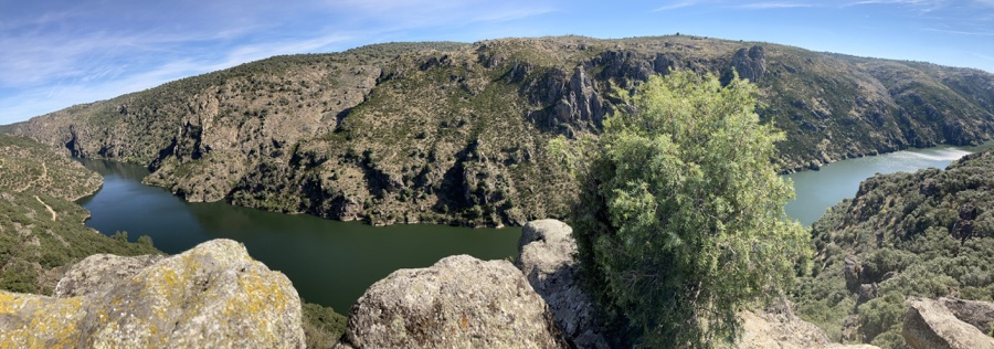 No miradouro da Fraga Amarela assistimos, lado a lado a imensos blocos graníticos, a nova curva do Douro.