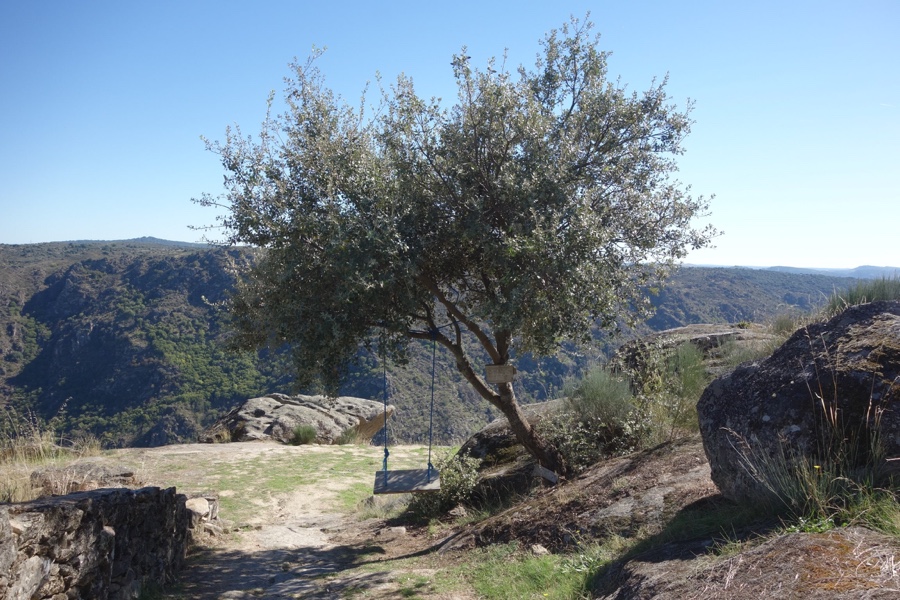 No miradouro do Carrascalinho, com baloiços em dose dupla, um repetitivo e outro mais mimoso atado a uma árvore, a vista do Douro apresenta-se sob a forma de uma elegante linha longílinea logo após mais uma doce curva.