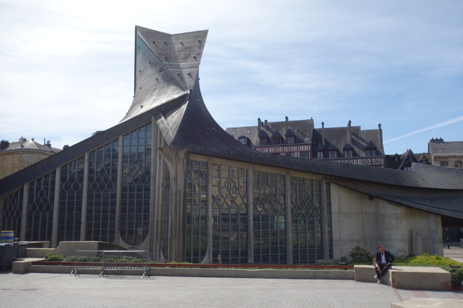 Voltando às igrejas de Rouen, muitas mais para além da Catedral há para nos maravilhar. A Abbaye Saint-Ouen e a Église Saint Maclou são outros dois enormes exemplos, ambas no estilo gótico flamejante. E a Église Sainte-Jeanne d’ Arc, na tal Place du Vieux Marché onde a figura histórica foi queimada, é também digna de visita, embora seja completamente distinta das demais pelo seu estilo modernista quer no exterior quer interior.