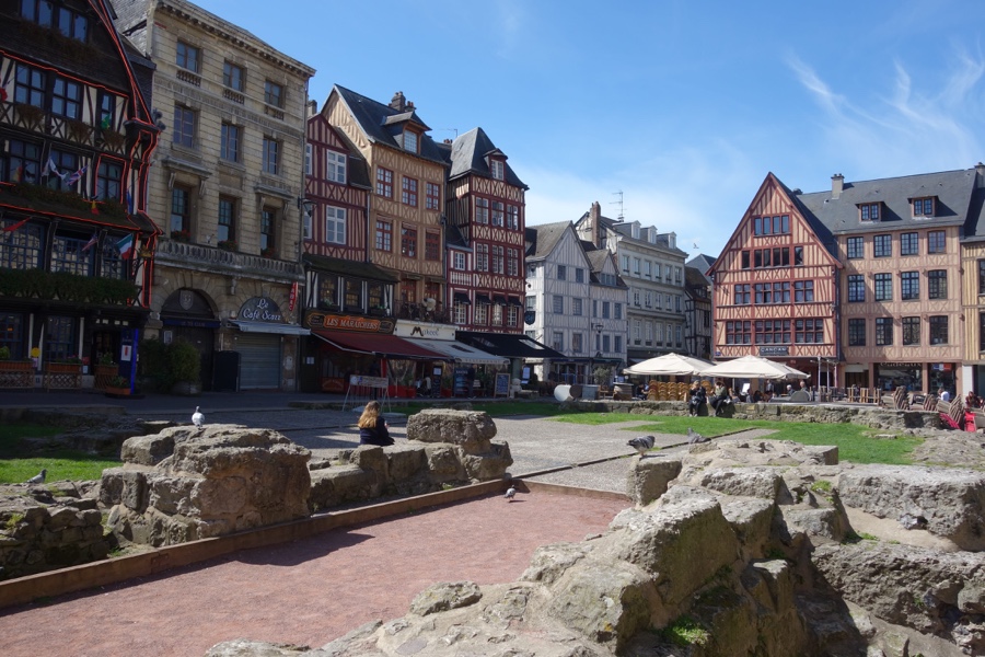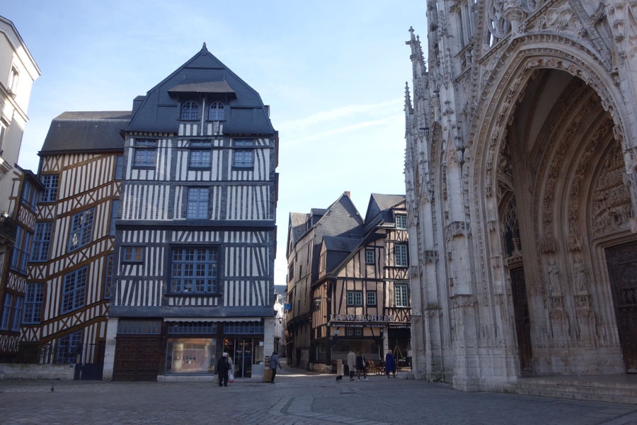 A capital da Normandia é uma cidade surpreendente, possuidora de um certo ambiente medieval, quer no traçado urbano e edifícios que a compõem, quer na história que se sente em muitas esquinas. Destruída pelo fogo e pela peste na Idade Média, ocupada pelos ingleses durante a Guerra dos 100 Anos, a Place du Vieux Marché (a sua praça central) foi o lugar onde Joana d’ Arc foi queimada na fogueira, em 1431, acusada pela Inquisição de feitiçaria e heresia. Como se não bastasse, durante a II Grande Guerra Mundial foi bombardeada pelos Aliados. Mas não há senão sem bela e as casas de madeira listadas e as igrejas de Rouen são suficientes para desviar os nossos sentidos para a sua beleza poderosa.